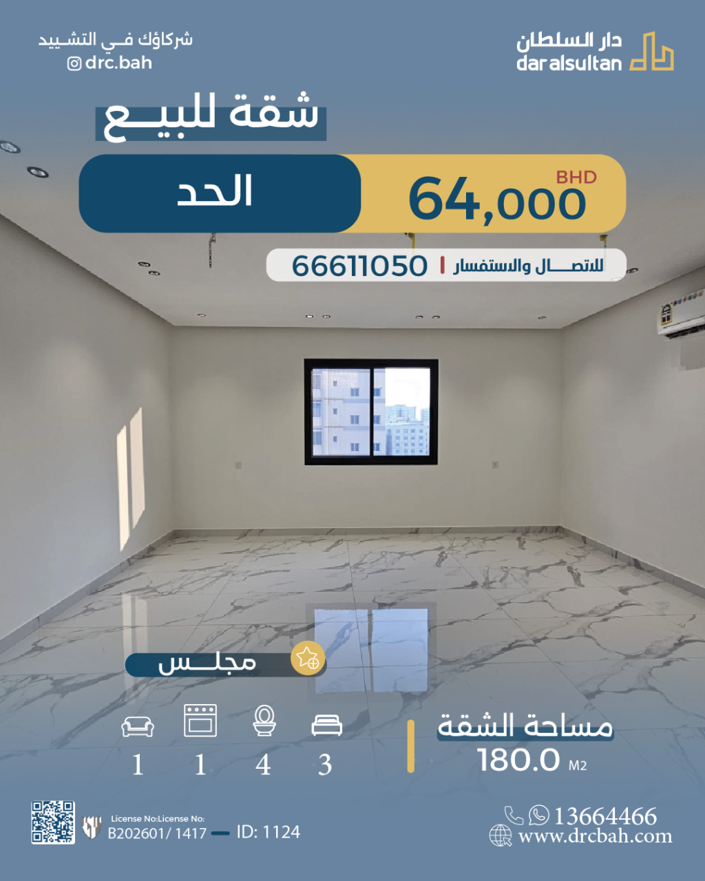 شقة سكنية للبيع في الحد. مساحة شقة 180 متر مربع, السعر الإجمالي 64,000.000د.ب