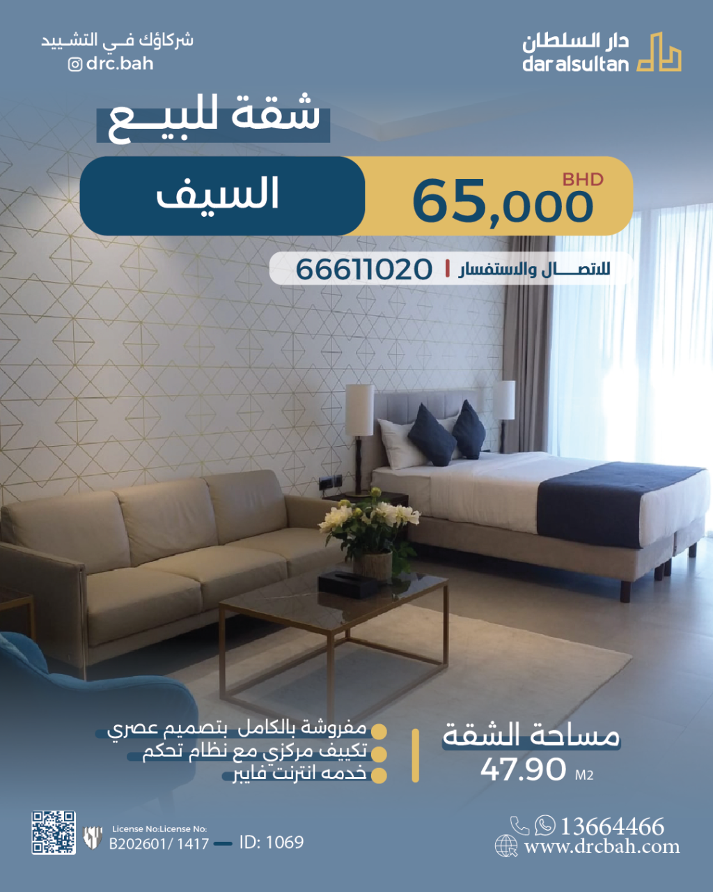 شقة سكنية للبيع في السيف. مساحة شقة 47.9 متر مربع, السعر الإجمالي 65,000.000د.ب