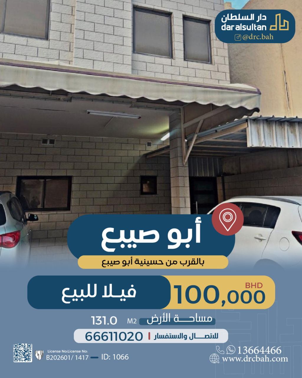 فيلا سكنية للبيع في ابوصيبع بتصنيف RB (مناطق السكن الخاص (ب)) تقع على شارع واحد. مساحة فيلا 131 متر مربع, السعر الإجمالي 100,000.000د.ب