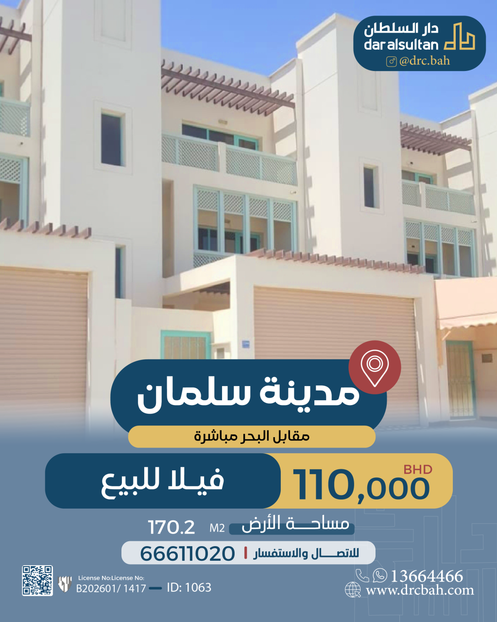 فيلا سكنية للبيع في البديع تقع على شارع واحد. مساحة فيلا 170.2 متر مربع, السعر الإجمالي 110.000د.ب