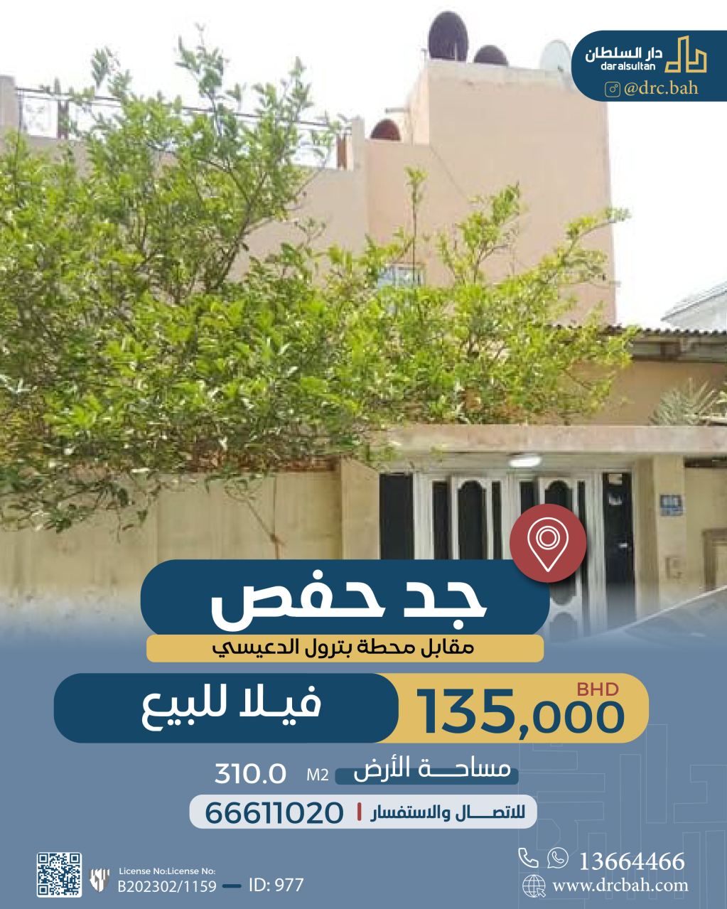 أرض سكنية للبيع في الهملة بتصنيف RHA (مناطق السكن المتصل - أ) تقع على شارع واحد. مساحة أرض 171.2 متر مربع, بسعر 31.75د.ب لكل قدم مربع , السعر الإجمالي 58,508.900د.ب