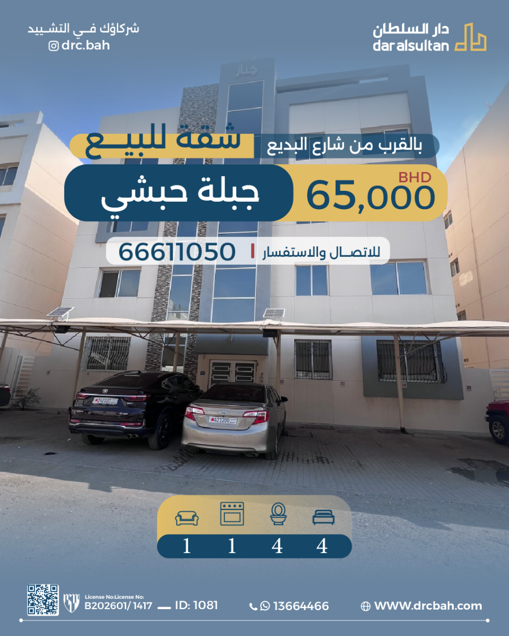 Residential Apartment for Sale in Jablat Habshi. The Apartment size is 33 SQM, with a total price of 65,000.000BHD