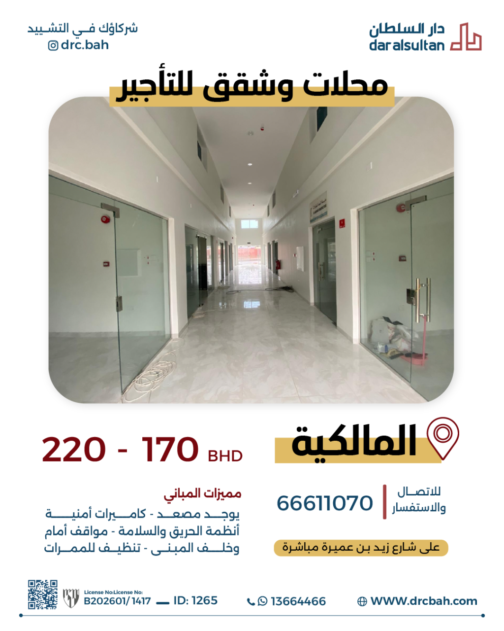 Commercial Building for Rent in Malkiya. The Building size is 1000 SQM, with a total price of 220.000BHD