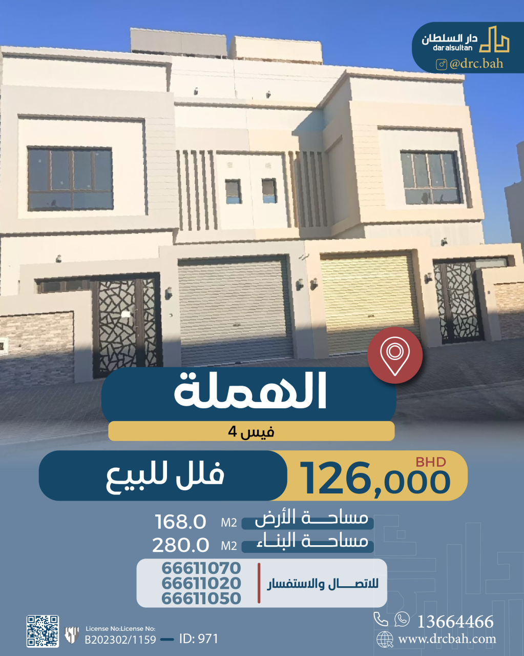 Residential Land for Sale in Hamalah with a classification of RA (Private Residential Area - A) located on One Road. The Land size is 200.3 SQM, priced at 34.00BHD per SQFT , with a total price of 73,305.020BHD