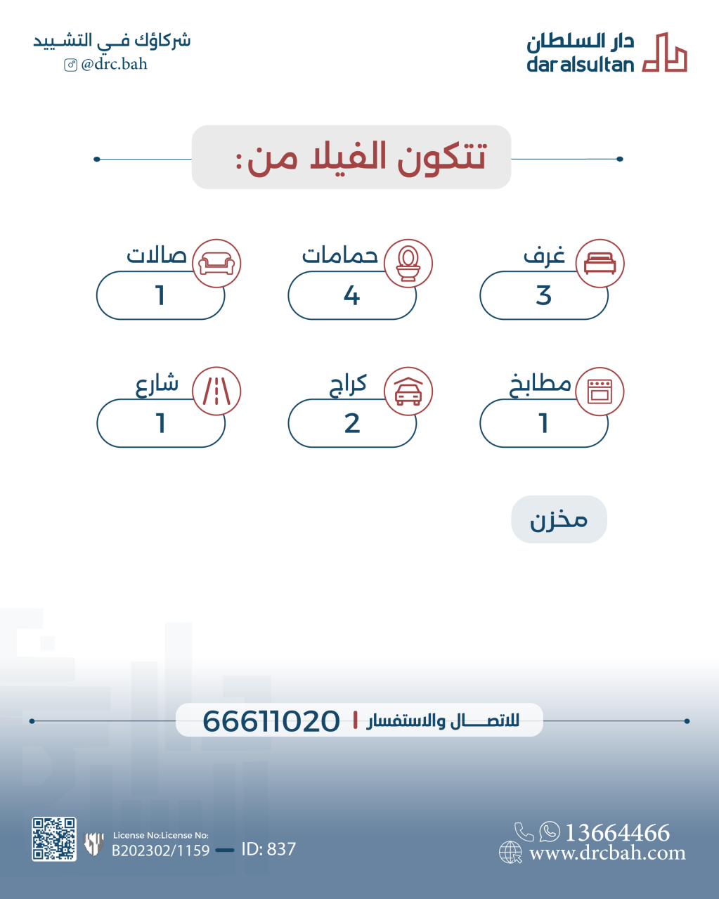 Residential Villa for Sale in Barbar. The Villa size is 162 SQM, with a total price of 112,000.000BHD