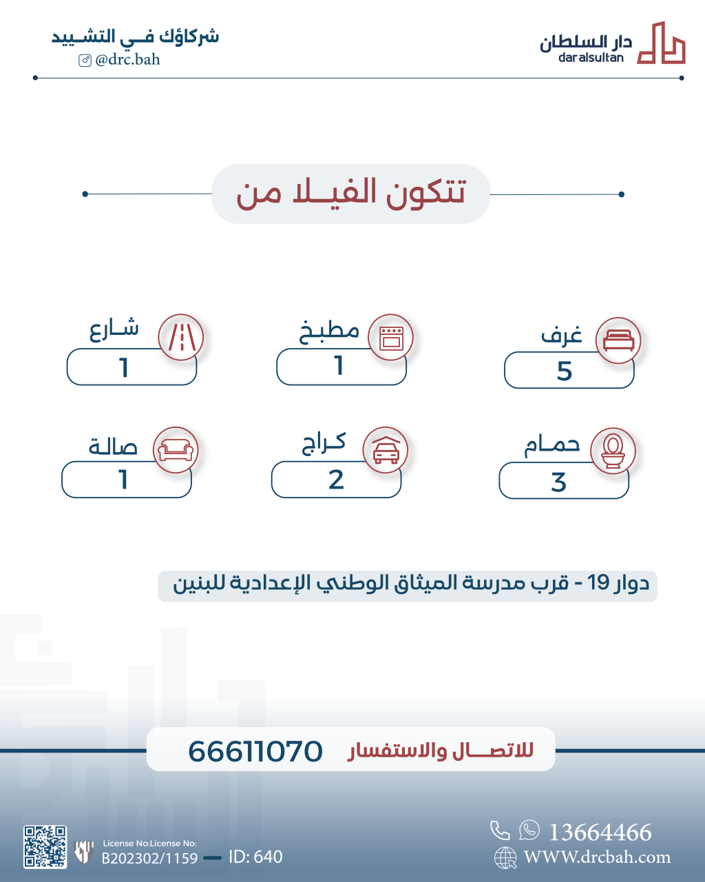Residential Villa for Sale in Hamad Town with a classification of MOH (Ministry of Housing Projects Zone). The Villa size is 300.6 SQM, with a total price of 120,000.000BHD