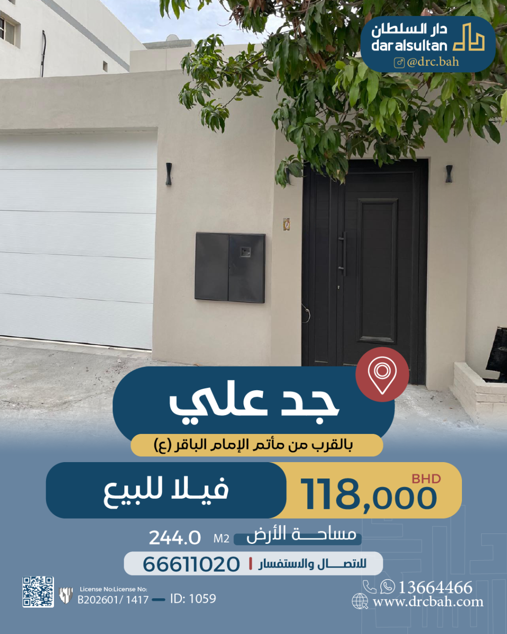 Residential Villa for Sale in Jid Ali with a classification of RB (Private Residential Area - B) located on One Road. The Villa size is 244 SQM, with a total price of 118,000.000BHD , Unfurnished