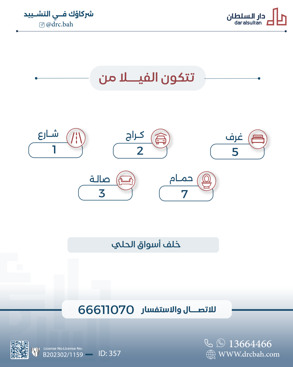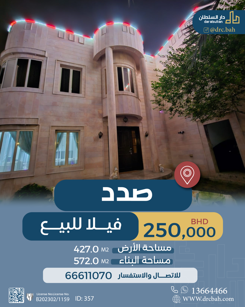 Residential Villa for Sale in SADAD located on One Road. The Villa size is 427 SQM, with a building size of 572 SQM, with a total price of 250,000.000BHD , Furnished