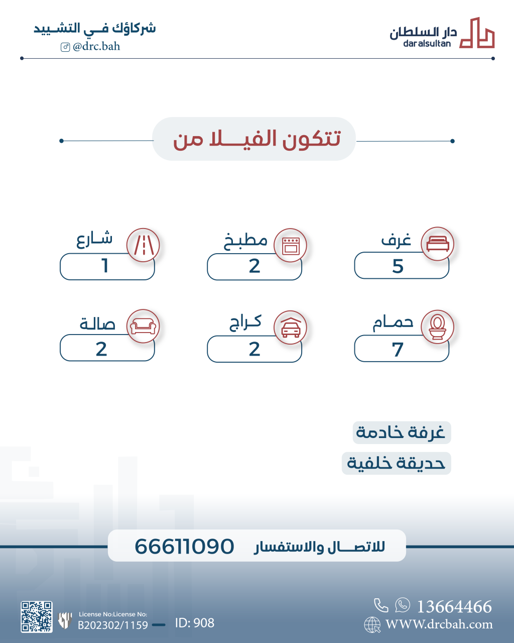 Consists of: 2 Floors, 5 Rooms, 1 Maid Rooms, 7 bathrooms, 2 Kitchens, 2 Halls